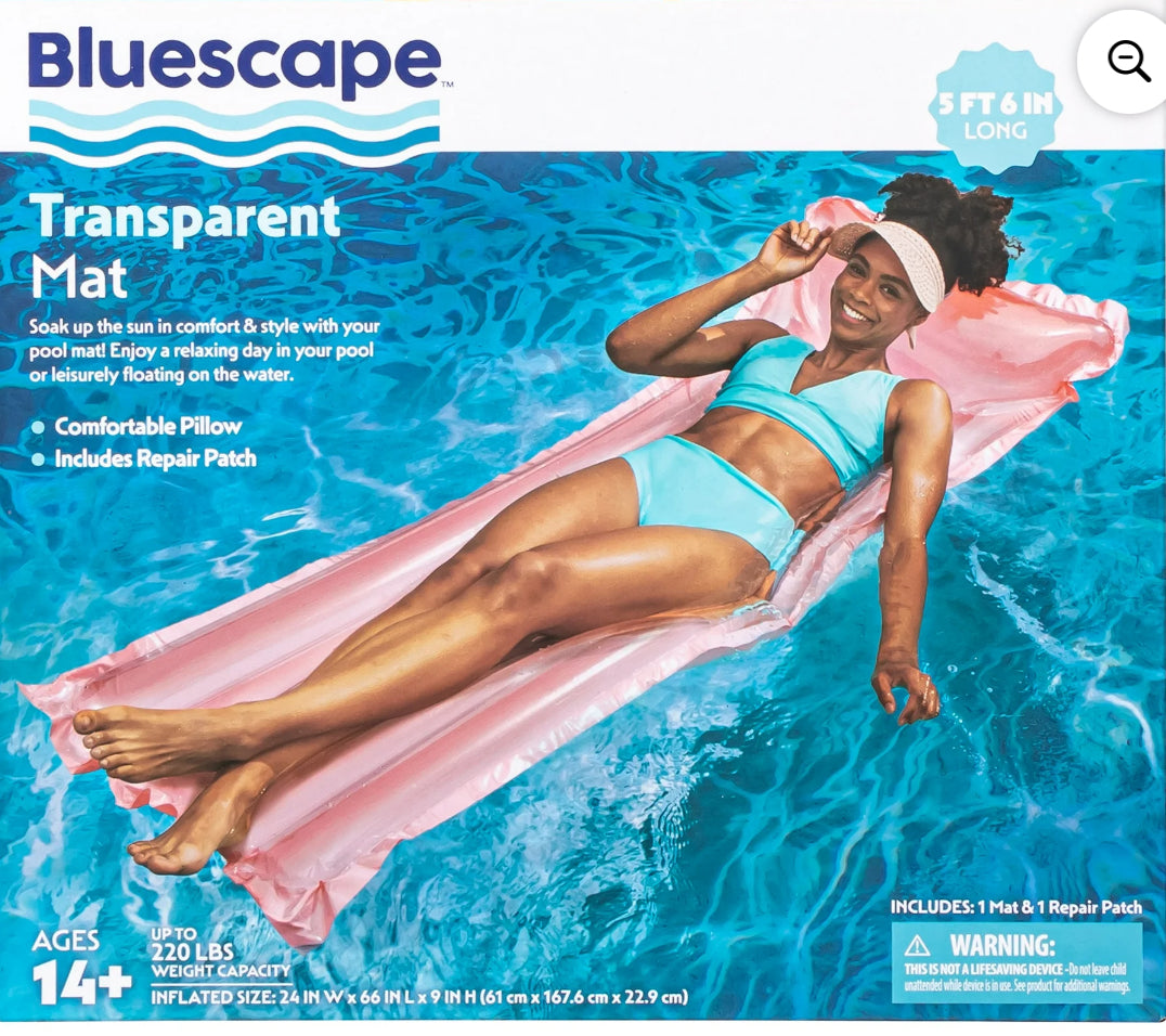 - Bluescape Pink Transparent Air Mat, Inflatable Pool Float, Age 14 & up, Unisex