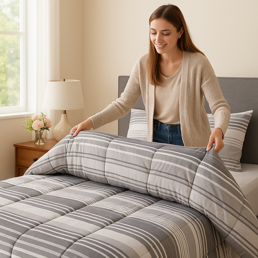 Olivia Home “Luca” – Gray Striped Twin Comforter Set (3pc)